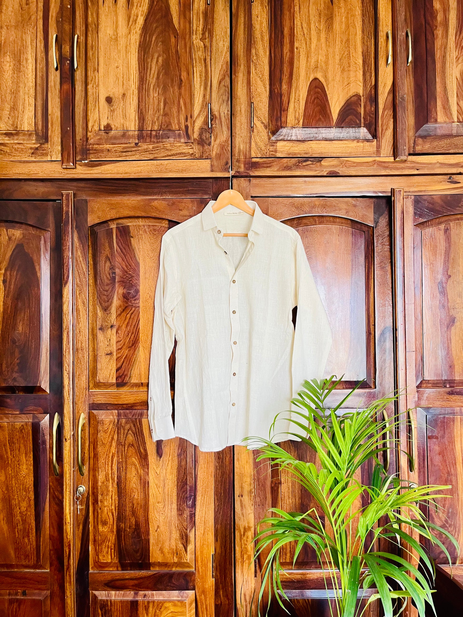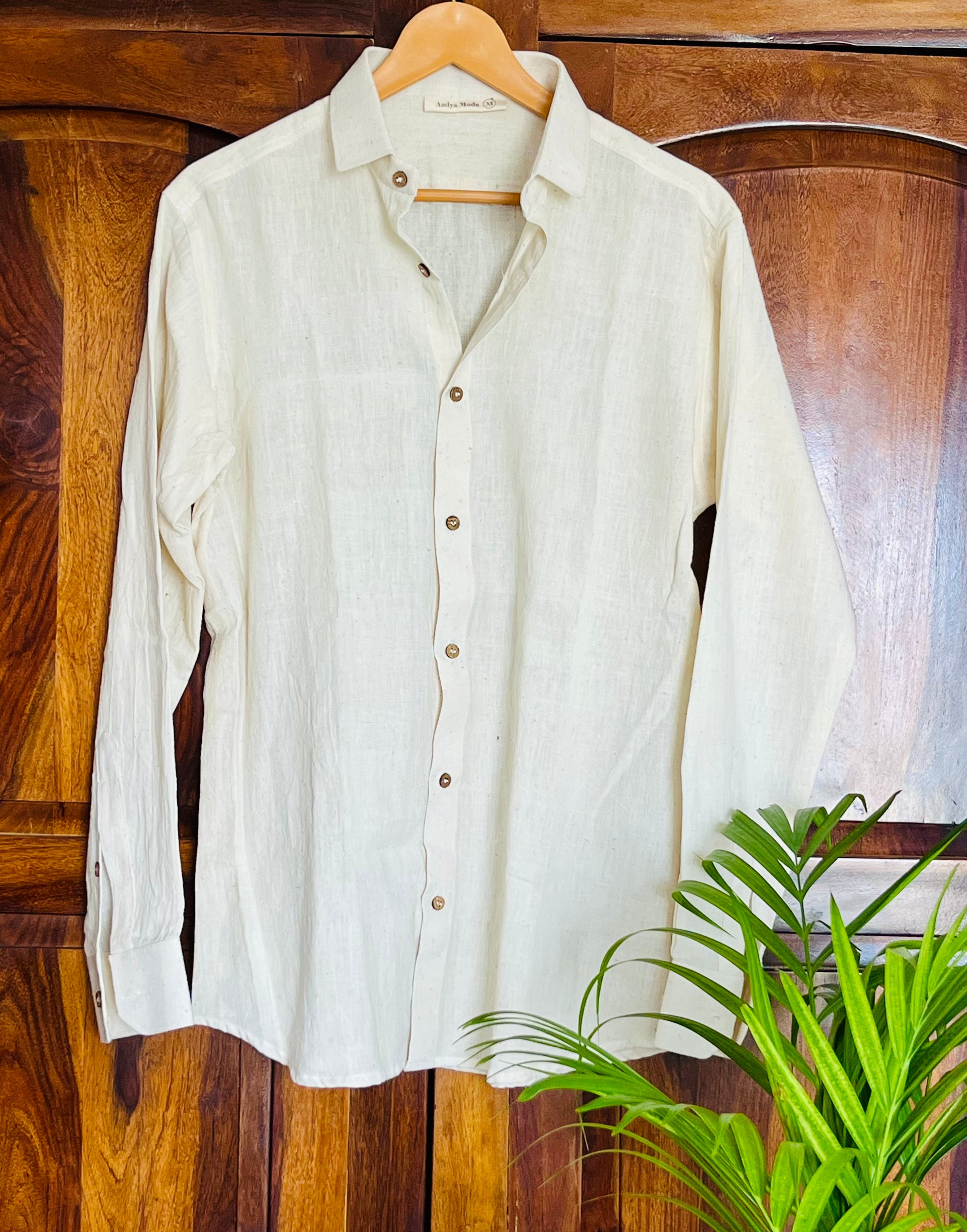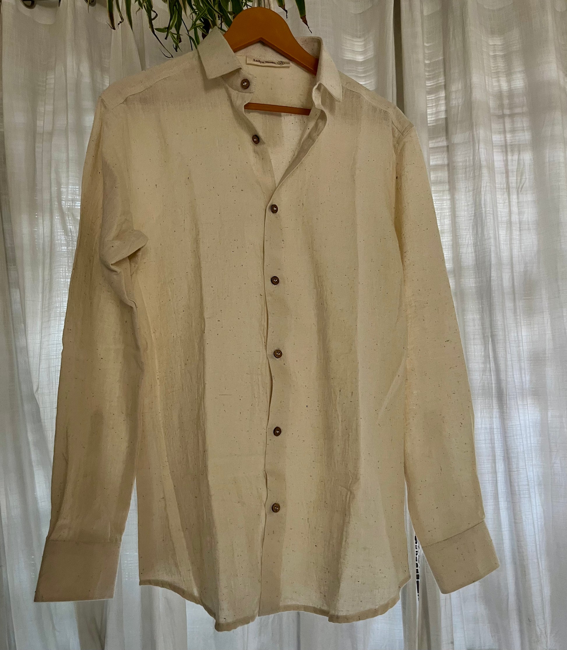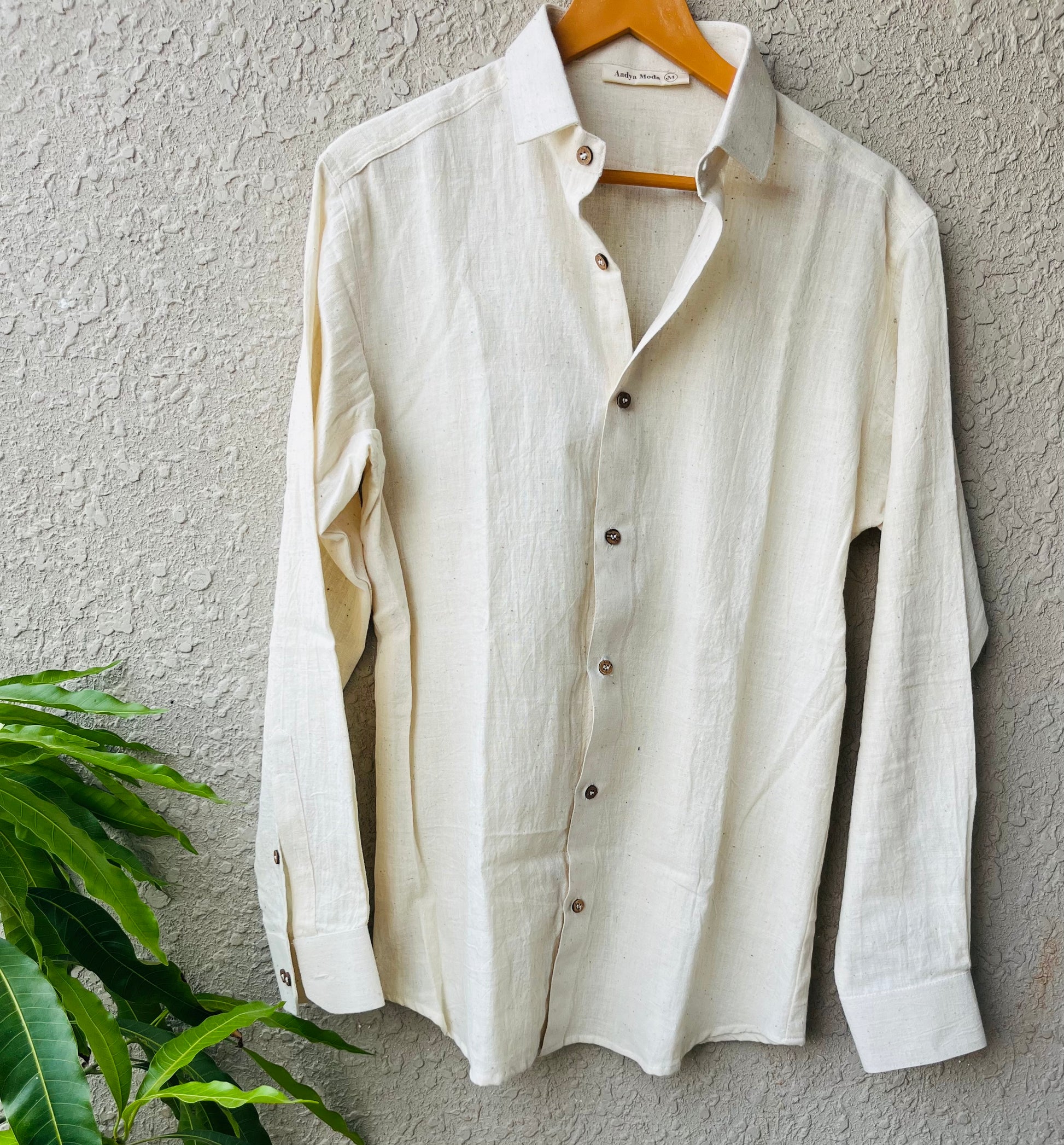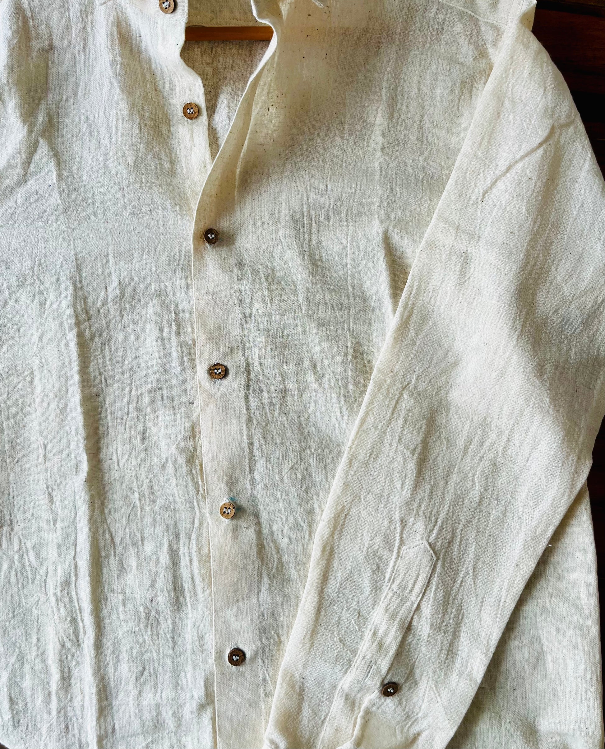 The Pure Roots shirt celebrates the raw beauty of Kala Cotton in its undyed, natural off-white form. No dyes, no chemicals — just pure, breathable comfort. This minimalist essential reflects mindful living and timeless elegance, ideal for both relaxed days and formal layering.