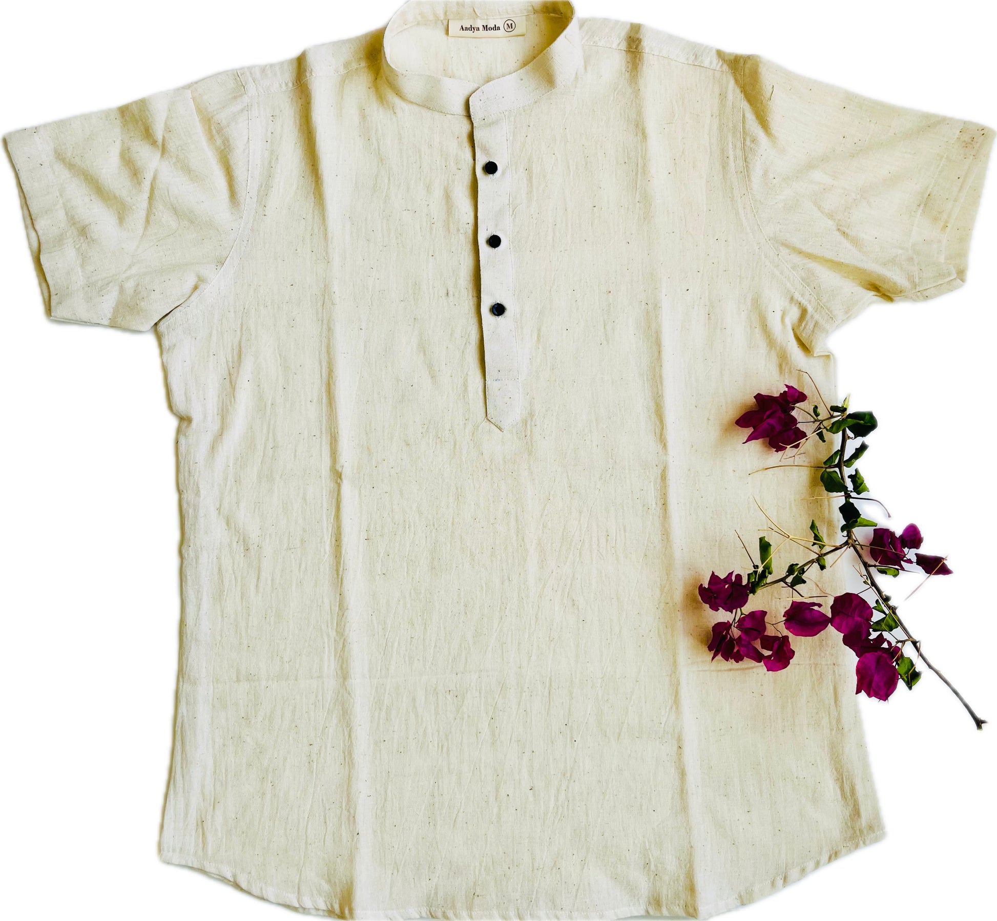 The Pure Roots shirt celebrates the raw beauty of Kala Cotton in its undyed, natural off-white form. No dyes, no chemicals — just pure, breathable comfort. This minimalist essential reflects mindful living and timeless elegance, ideal for both relaxed days and formal layering.