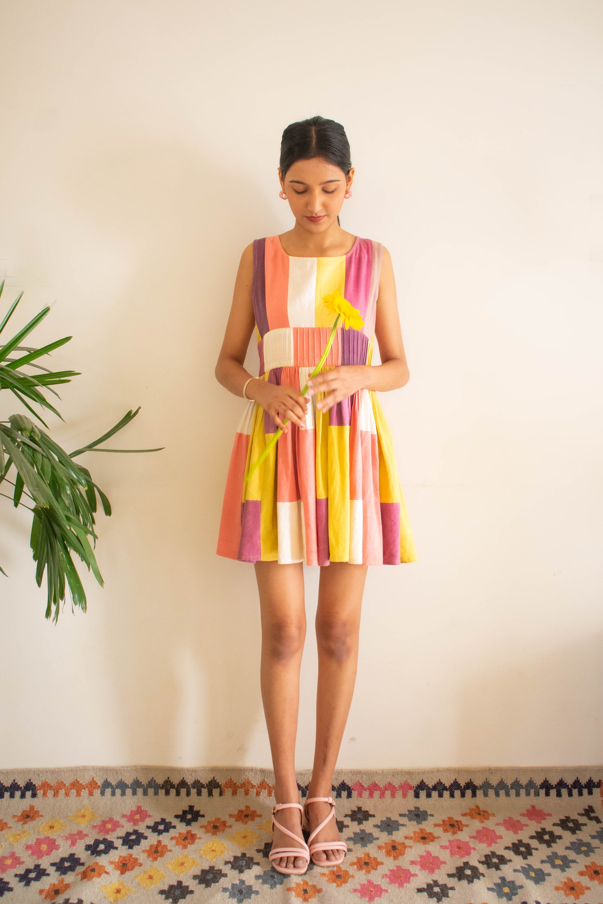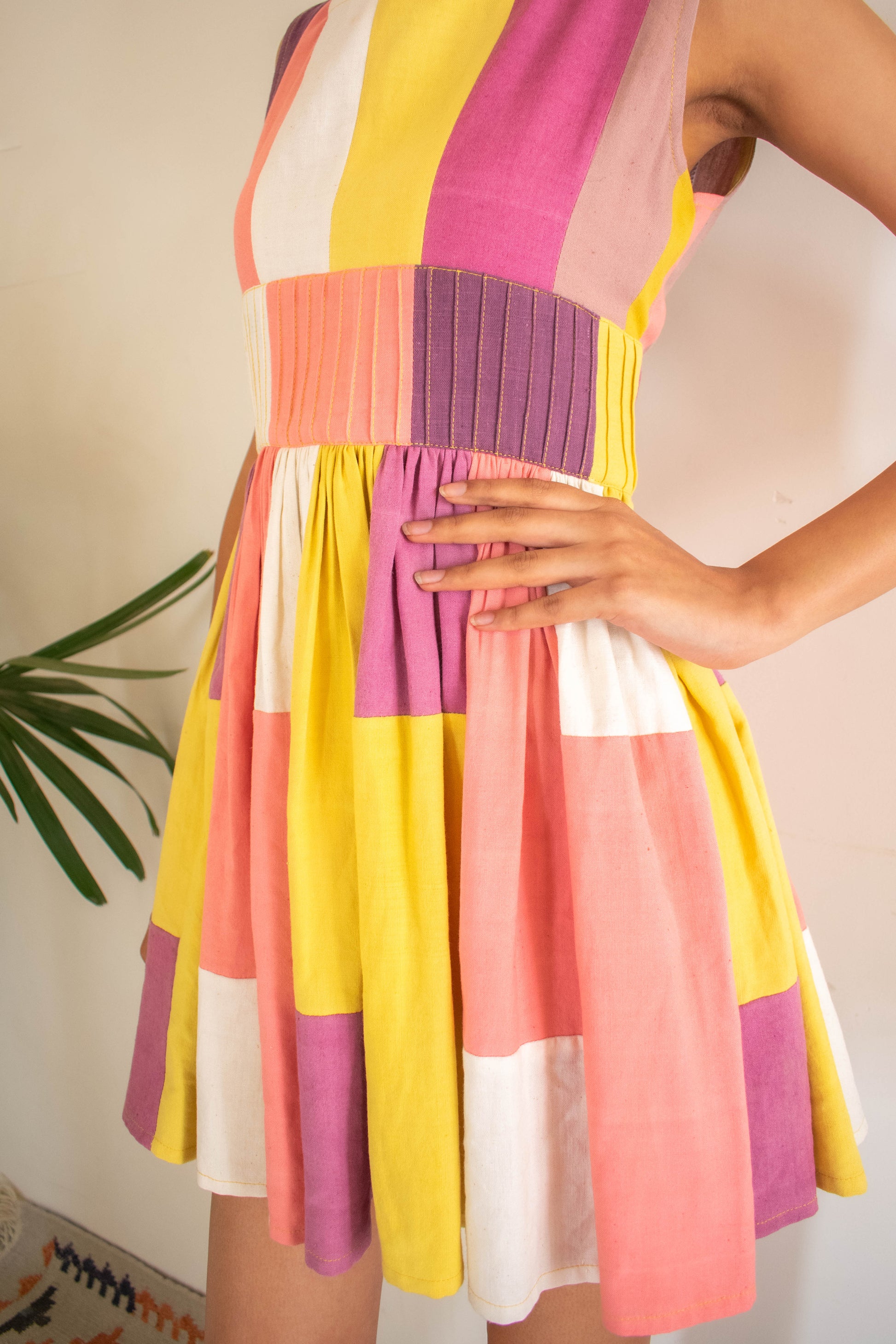 Unleash your playful side with our Bamboo Blossom Dream Dress. This new patchwork dress is upcycled from bamboo fabric, featuring a fun mix of colors - pink, yellow, purple, and white. The mix of colors and the upcycled, patchwork style combined with the smoothness of bamboo fabric gives a sense of natural beauty and a dreamy feel to the dress adding a festive and vacay vibe to your wardrobe. (Sustainable and stylish, it's a must-have!)