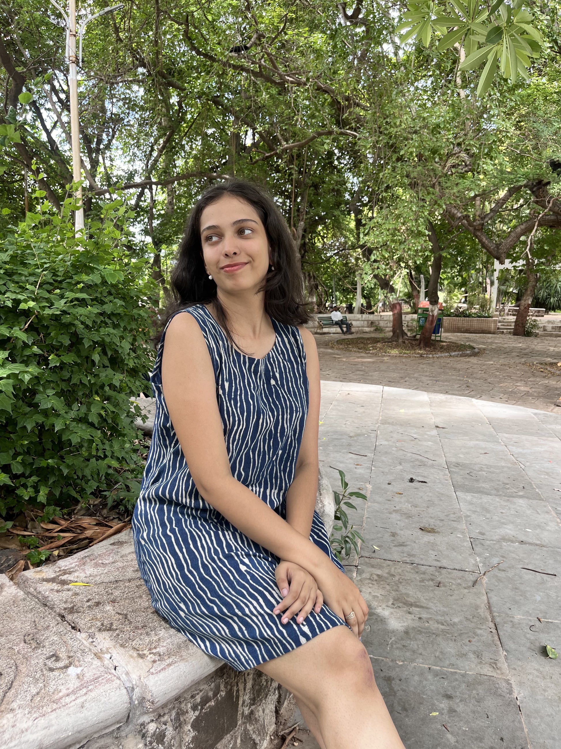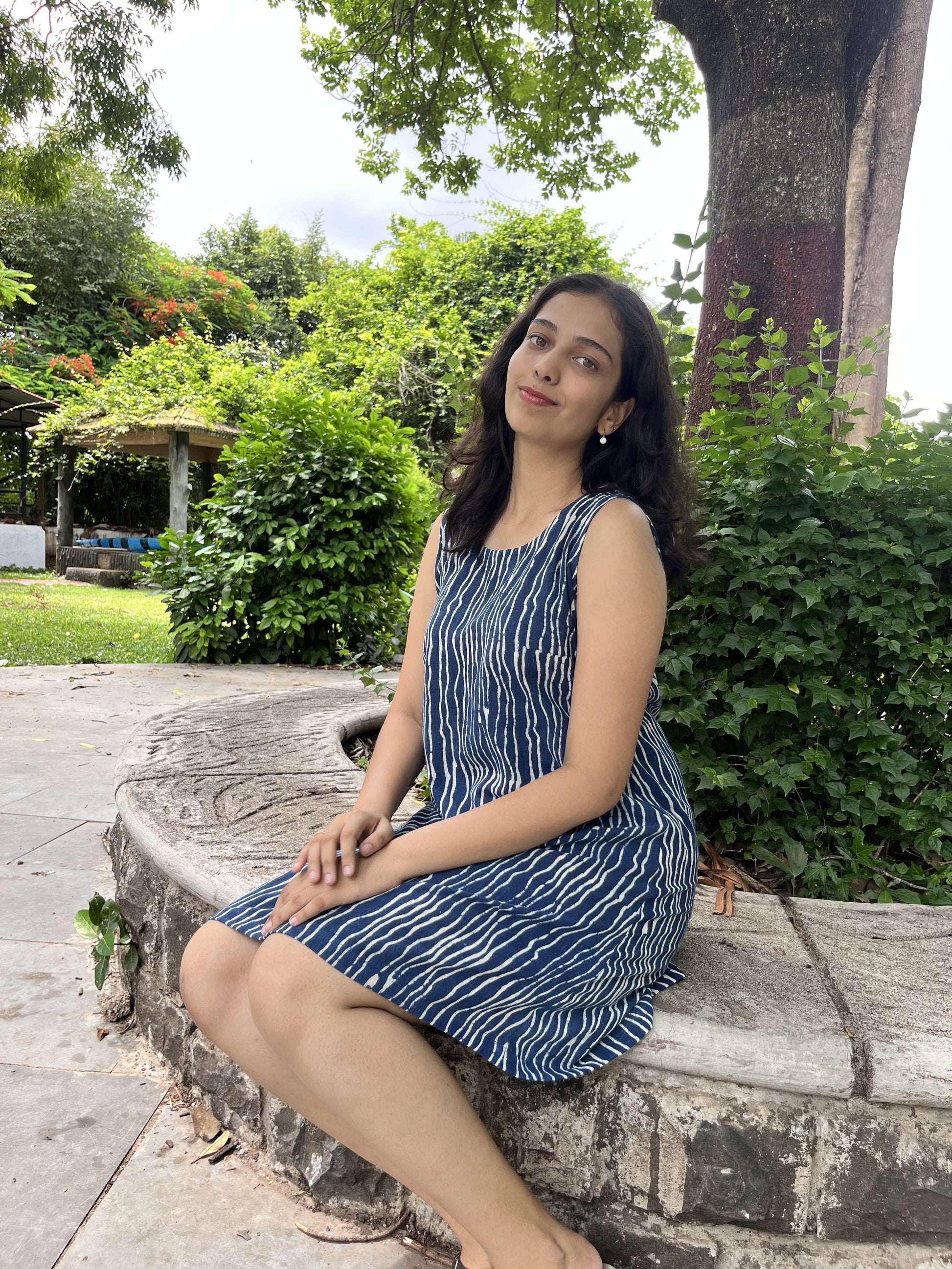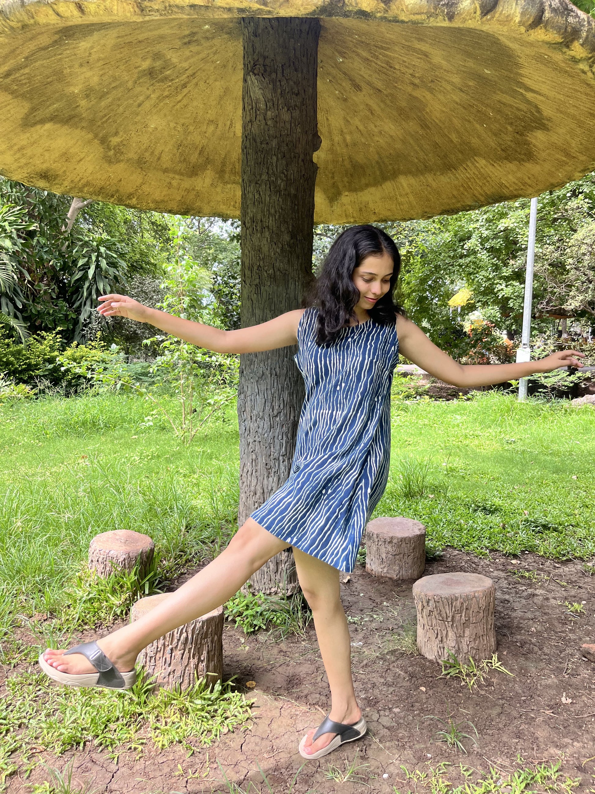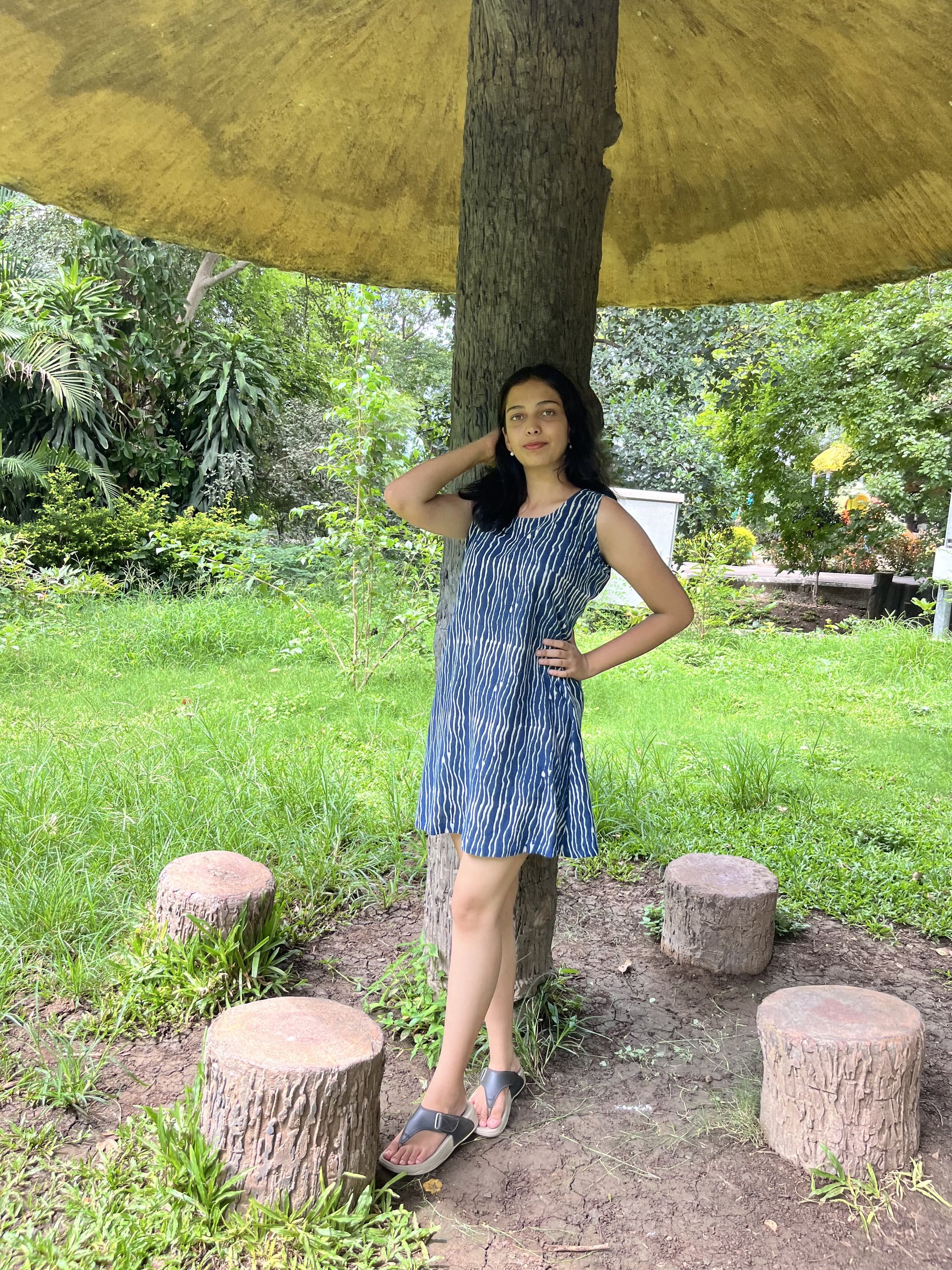Elevate your daily wardrobe with the Indigo Delight dress. Crafted from premium Kala cotton, this thigh-length, sleeveless dress is the embodiment of sustainable fashion. The vibrant indigo blue, created using eco-friendly dyes, is adorned with charming white dabu prints making it perfect for casual, everyday wear. The round neckline adds a touch of simplicity and elegance, ensuring comfort and style. Embrace a sustainable lifestyle with the Indigo Delight dress, where eco-consciousness meets effortless chic.